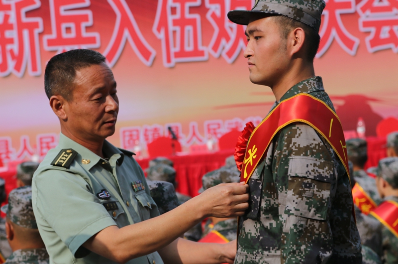 县委副书记沈明举等军地领导为新兵家属发放了光荣牌,向入伍新兵致以崇高的敬意,向积极送子参军的家属表示衷心的感谢。嘱咐入伍新兵要珍惜荣誉,牢记使命,树立在军营建功立业的远大理想,为家乡争光;要加强自我约束,严格锻炼,以苦为荣,遵守严格的军规和铁的纪律,用双手筑起祖国坚强的钢铁长城,用行动保卫祖国的繁荣和安宁。