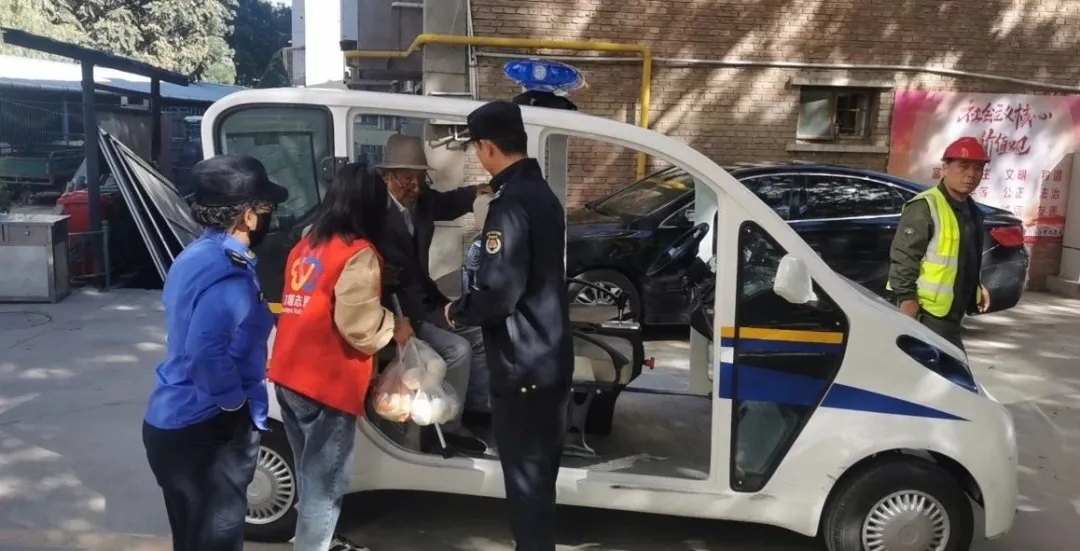 经了解,老人今年已经98岁了,因步行时突然腿软导致摔倒。天盛社区工作人员仔细辨认后,确认老人是辖区吉和家园的住户,于是联系上了摔倒老人的家人,在得知摔倒老人家中目前只有年迈老伴在家的情况后,社区工作人员便联系辖区综合执法中队,用执勤车将老人送回家。