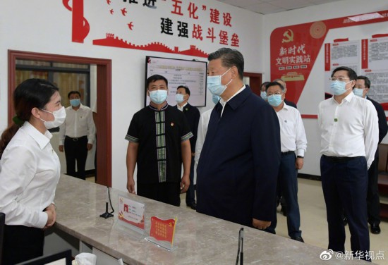 习近平总书记16日赴湖南考察调研。当天下午,他来到郴州市汝城县文明瑶族乡沙洲瑶族村“半条被子的温暖”专题陈列馆、村服务中心和卫生室、沙洲现代农旅示范基地、文明瑶族乡第一片小学,以及村民家中,了解当地开展红色教育、发展扶贫产业、巩固脱贫成果等情况。(文字记者张晓松、朱基钗 摄影记者李学仁、谢环驰、岳月伟 )