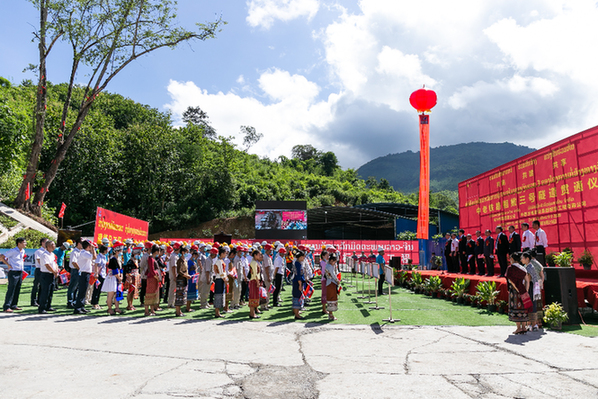 这是9月29日在老挝北部琅勃拉邦省拍摄的相嫩三号隧道贯通仪式现场。