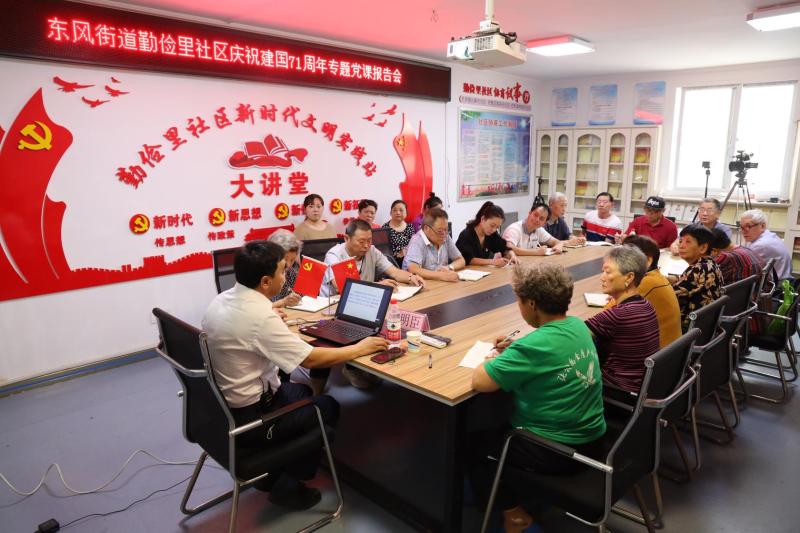 东风街道勤俭里社区举行庆祝建国71周年专题党课报告会