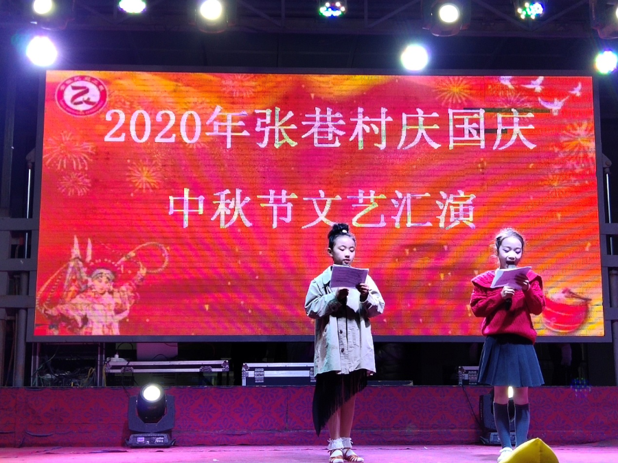 为进一步弘扬中华民族优秀传统文化,丰富居民的精神文化生活,营造热烈喜庆、文明祥和的节日氛围。10月4日晚,杨庙乡张巷村文化广场歌舞升平,欢声笑语,这里正在举办以“聚力脱贫攻坚 决胜全面小康”为主题的“庆国庆、中秋”文艺晚会。
