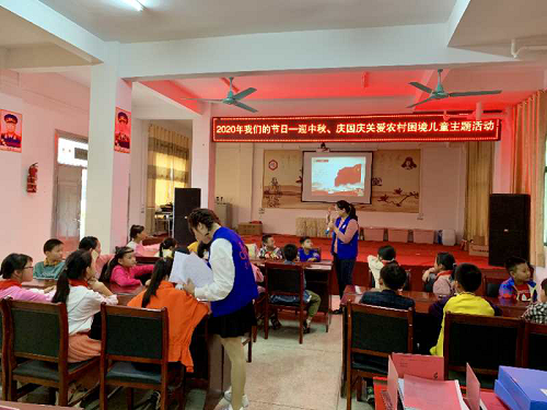 (本网讯)在中秋、国庆双节来临之际,为促进留守儿童在全社会的关心、关爱、关注中健康成长,9月29日下午,梁子镇团委联合爱熙社工在长岭小学开展了“2020年我们的节日--迎中秋、庆国庆关爱农村困境儿童”主题活动。