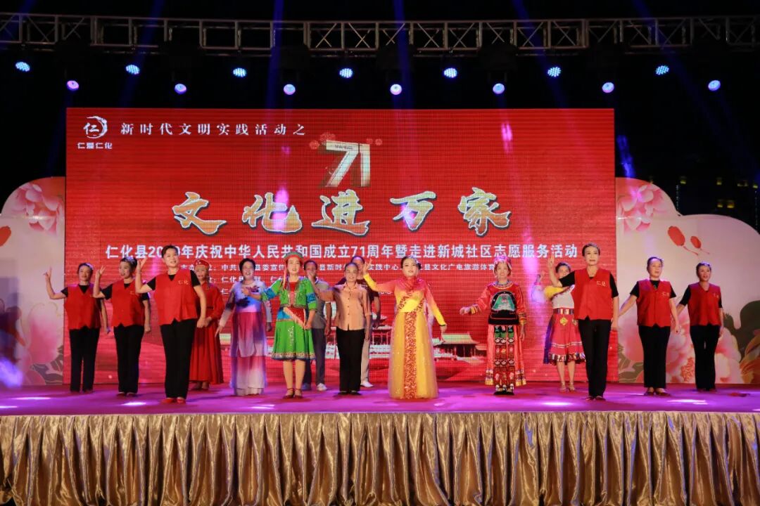 10月2日晚,我县在县城文化广场举办庆祝中华人民共和国成立71周年“文化进万家”走进新城社区志愿服务文艺演出活动,数百名群众欢聚一堂,载歌载舞共同欢庆中秋国庆“双节”。