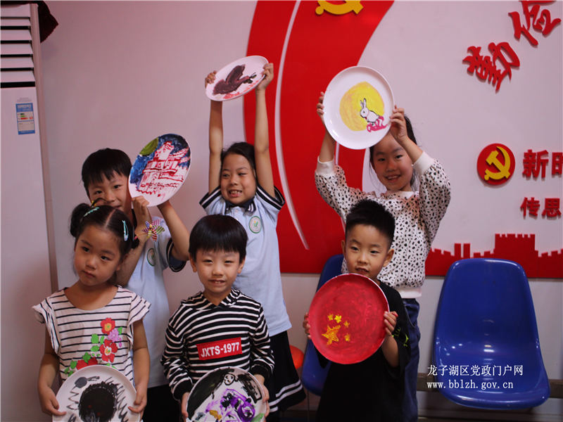 活动中,孩子们一起在圆圆盘子上绘画,用自己手中的画笔描绘“中秋节”在自己心中的“模样”,经过一个多小时的绘画,一幅幅绘画作品便跃然于一个个小小的圆盘上,有美丽的嫦娥奔月、有雄伟壮观的天安门、长城、有飘扬在空中的五星红旗,有象征着和平的小白鸽等。在温馨、和谐的创作氛围中,孩子们一起体验成功的快乐,体验了一把中国传统节日的魅力,整个活动洋溢着浓浓的节日之情。