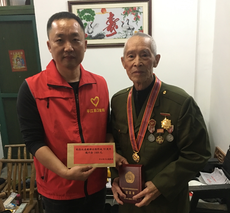 10月27日,县卫健局对卫健系统内抗美援朝老兵们进行走访慰问,为他们送去了抗美援朝70周年纪念勋章和慰问金。