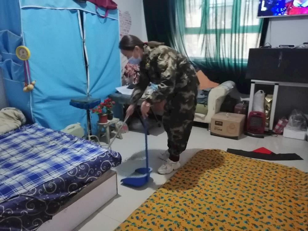 学苑社区开展家政服务活动,帮老人打扫卫生。