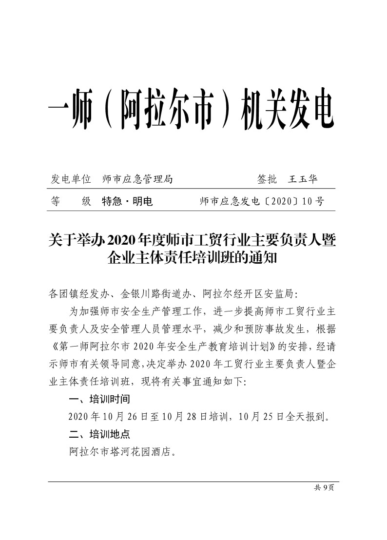 关于举办2020年度师市工贸行业主要负责人暨企业主体责任培训班的通知