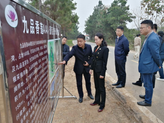 在官田村九品香莲基地,夏帆对该村依托自身优势发展产业的作法予以充分肯定。夏帆指出,实施乡村振兴就是要突出第一产业,促进第二产业,带动第三产业。要通过农旅融合,大力培育一批具有梁子湖特色的农产品品牌,并以此带动农村发展农民增收。