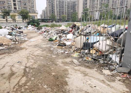 (二)社区垃圾收集站垃圾遍地,管理缺位,严重影响市容市貌和群众生产生活。自然岭路422号生活垃圾收集站点周边堆放了大量建筑垃圾和生活垃圾,垃圾站既无任何标识,也无防护措施,现场恶臭扑鼻、环境恶劣,严重影响群众生产生活,安全和环境隐患非常突出。同时,自然岭片区沿路遍地堆放垃圾、污水横流、环境卫生管理严重缺失,附近还有大型的垃圾压缩站、收集站、回收站,已形成“垃圾社区”,居民生产生活环境堪忧。