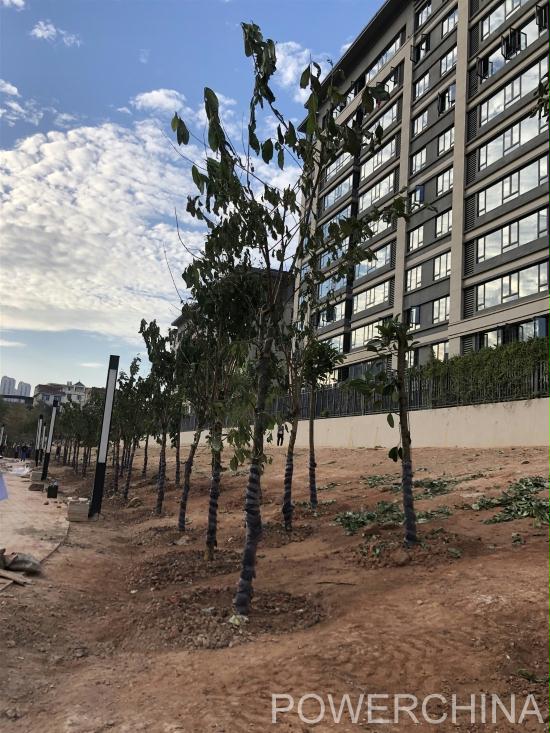 绿化工程是整个苍林河景观工程中的最亮风景线,为保证苗木质量,项目部联合项目公司、监理单位、设计单位、总包单位对计划第一批进场的黄槿进行考察,选择外观形象好,树形优美,符合苍林河景观工程设计理念的苗木,并对选择好的苗木进行号苗,经过号苗的合格树,贴上“号苗封条”后集中运输至施工现场,保证了树木姿态优美、高低一致。