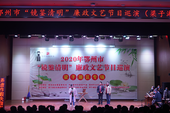 (本网讯)“透视‘戏中人’,争做‘清廉人’。”11月5日,鄂州市“镜鉴清明”廉政文艺在鄂州市梁子湖区倾情演出,300余名副科级以上干部,同受廉政文化的感召力。