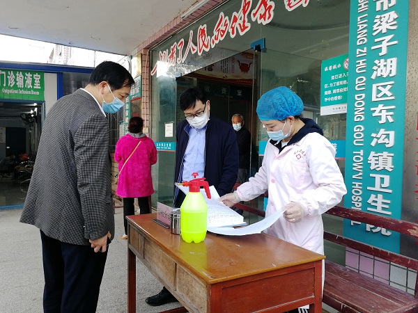 蔡和林来到东沟镇卫生院,实地察看了解发热门诊规范化建设、医护人员及设备配备、诊疗处置流程、医疗物资储备及近期接诊情况,并现场听取了卫生院门诊大楼综合改造工程有关情况的汇报。