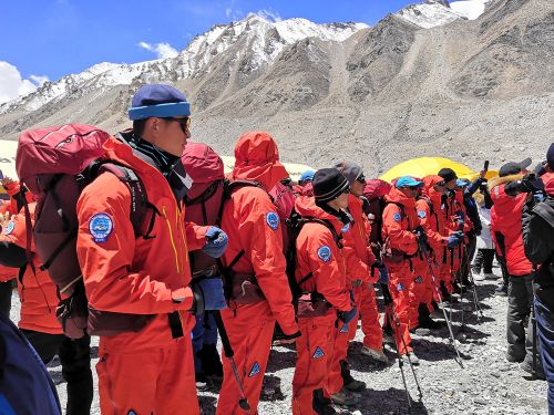 5月6日下午,2020珠峰高程测量登山队从海拔约5200米的珠峰大本营出发,2020珠峰高程测量登顶行动正式开启。