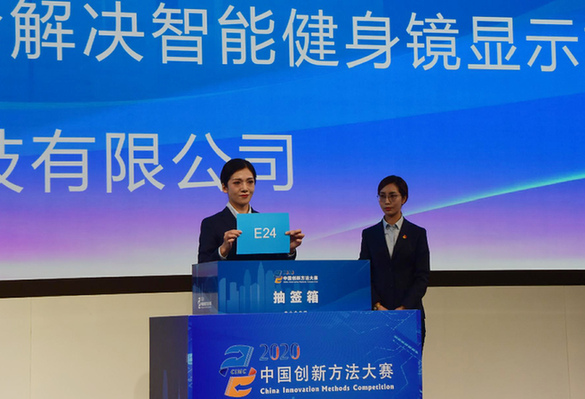 公证部门工作人员展示2020年中国创新方法大赛总决赛分组抽签结果(11月30日摄)。
