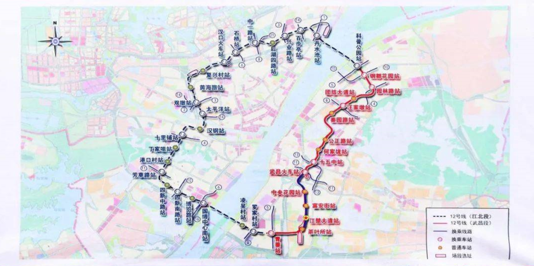 地铁12号线路分为武昌段和江北段两个项目施工,武昌段已于2020年3月30日开工,最早将于2024年底通车。江北段预计2025年通车。