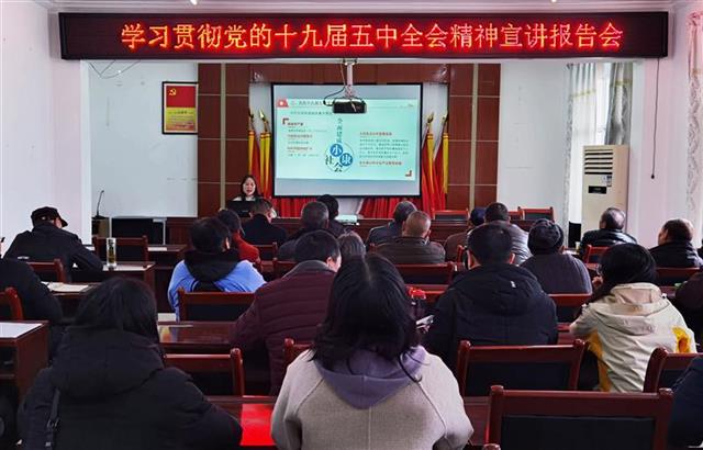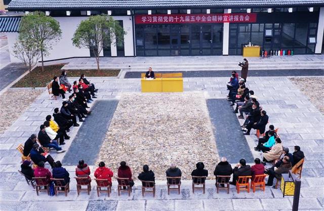 在嫘祖镇苟家垭村,远安县委党校驻村扶贫队员、讲师易平在村委会以《开启新征程 创造新伟业》为题,从党的十九届五中全会重大意义、主要精神、深入学习贯彻落实全会精神三个方面,为全村40余名党员代表、困难群众送上了一堂精彩生动、通俗易懂的全会精神宣讲课。