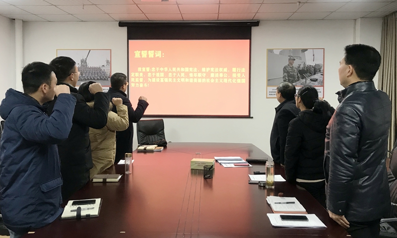 开展宪法宣誓活动。为进一步弘扬宪法精神、维护宪法权威,加强党员干部队伍思想政治教育,12月2日上午,在第七个国家宪法日来临之际,固镇县退役军人事务局隆重举行宪法宣誓仪式活动。活动中,全体党员干部整齐站立,在领誓人陈学平局长带领下,面向国徽和宪法肃立,高举右臂,紧握右拳,庄严宣誓,会场上响彻了“忠于中华人民共和国宪法,维护宪法权威,履行法定职责,忠于祖国……”的誓词。