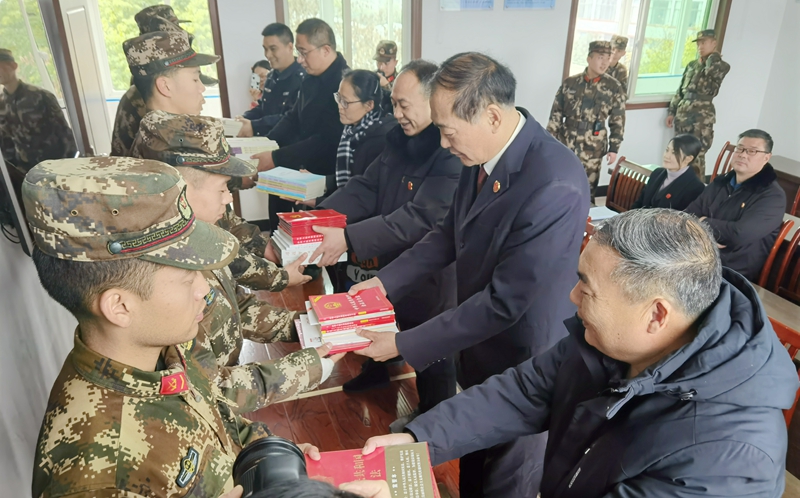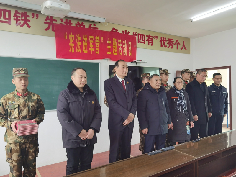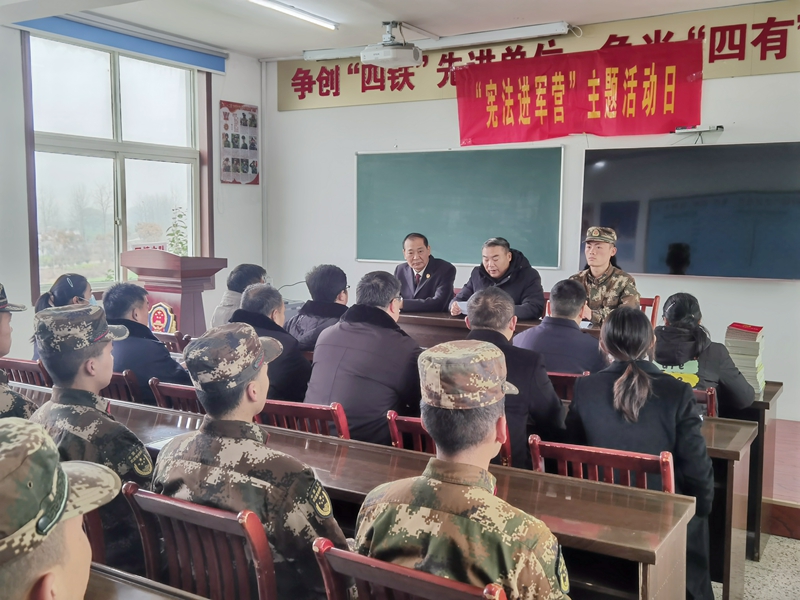 开展“宪法进军营”主题日活动。为进一步提高驻军部队法律意识,更好帮助驻地官兵知法懂法守法用法,12月6日上午,固镇县退役军人事务局联合法院、检察院、司法局、公安局开展“宪法进军营”活动。活动中,普法志愿者向现场官兵赠送《宪法》读本、《退役军人保障法》宣传彩页和法治宣传抽纸等宣传物品,方便官兵们学习了解法律知识。各单位普法志愿者为大家介绍此行的目的是宣传宪法知识、弘扬宪法精神、了解官兵法治需求、维护官兵权益,帮助官兵准确领会宪法的核心要义和实施退役军人保障法的重大意义。同时,就相关法律中关于权益保障、婚姻家庭、就业创业、优待抚恤等内容与官兵互动交流,发放“法律援助”联系卡,解答法律问题,贴近官兵实际需要,受到官兵的热烈欢迎。