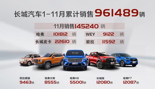 11月,长城汽车旗下明星车型齐发力,四大品牌延续了金九银十的昂扬势头。