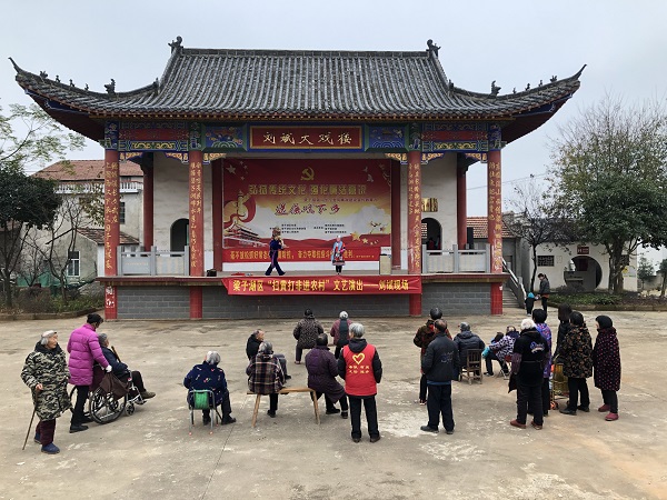 (本网讯)为有效提升广大群众对“扫黄打非”工作的认知度和支持度,努力形成全社会认同、支持、参与“扫黄打非”工作的良好氛围。12月7日,梁子镇刘斌村和长岭居委会分别在刘斌大戏楼和长岭码头举办了“扫黄打非进农村”文艺演出活动。