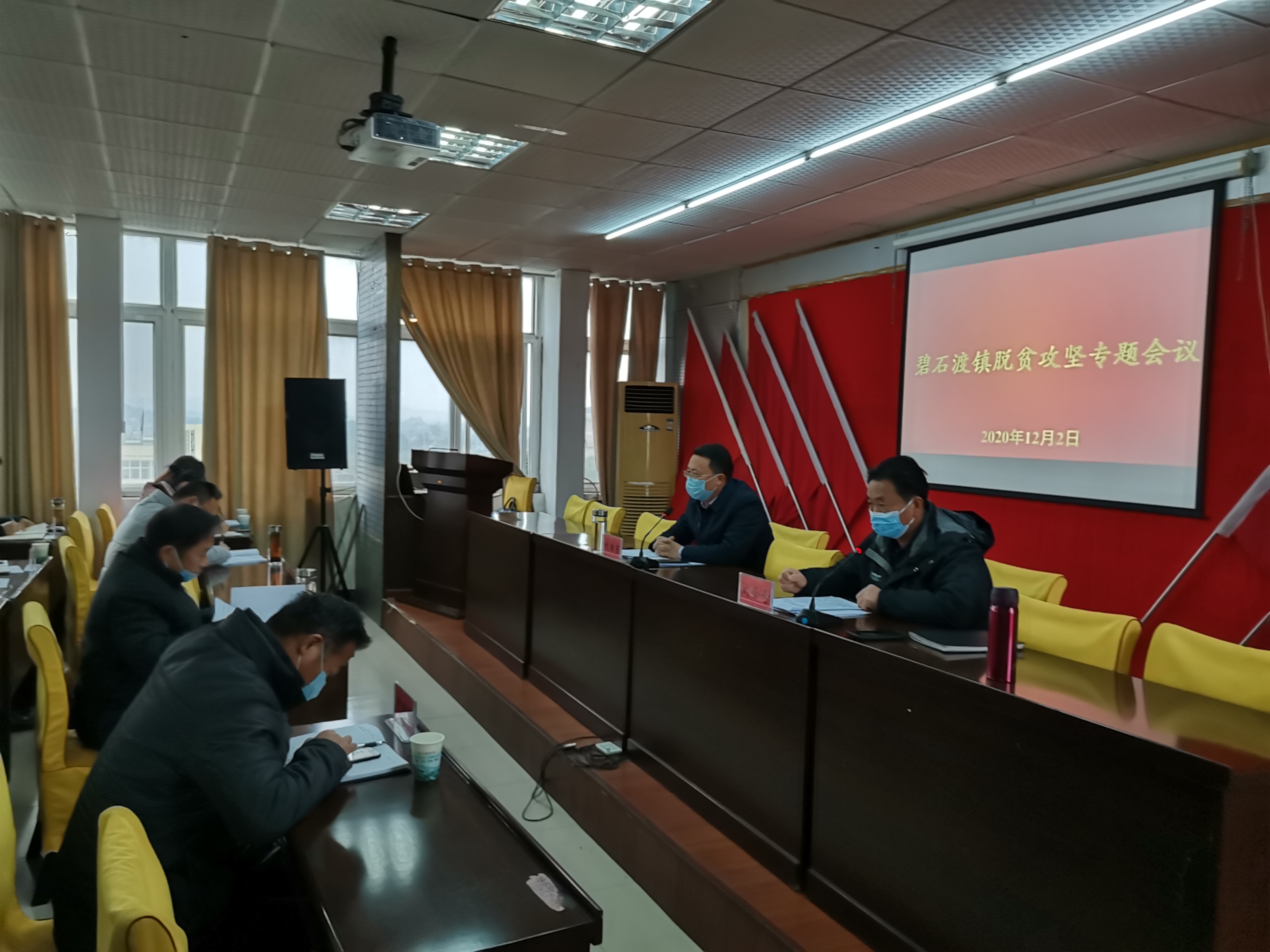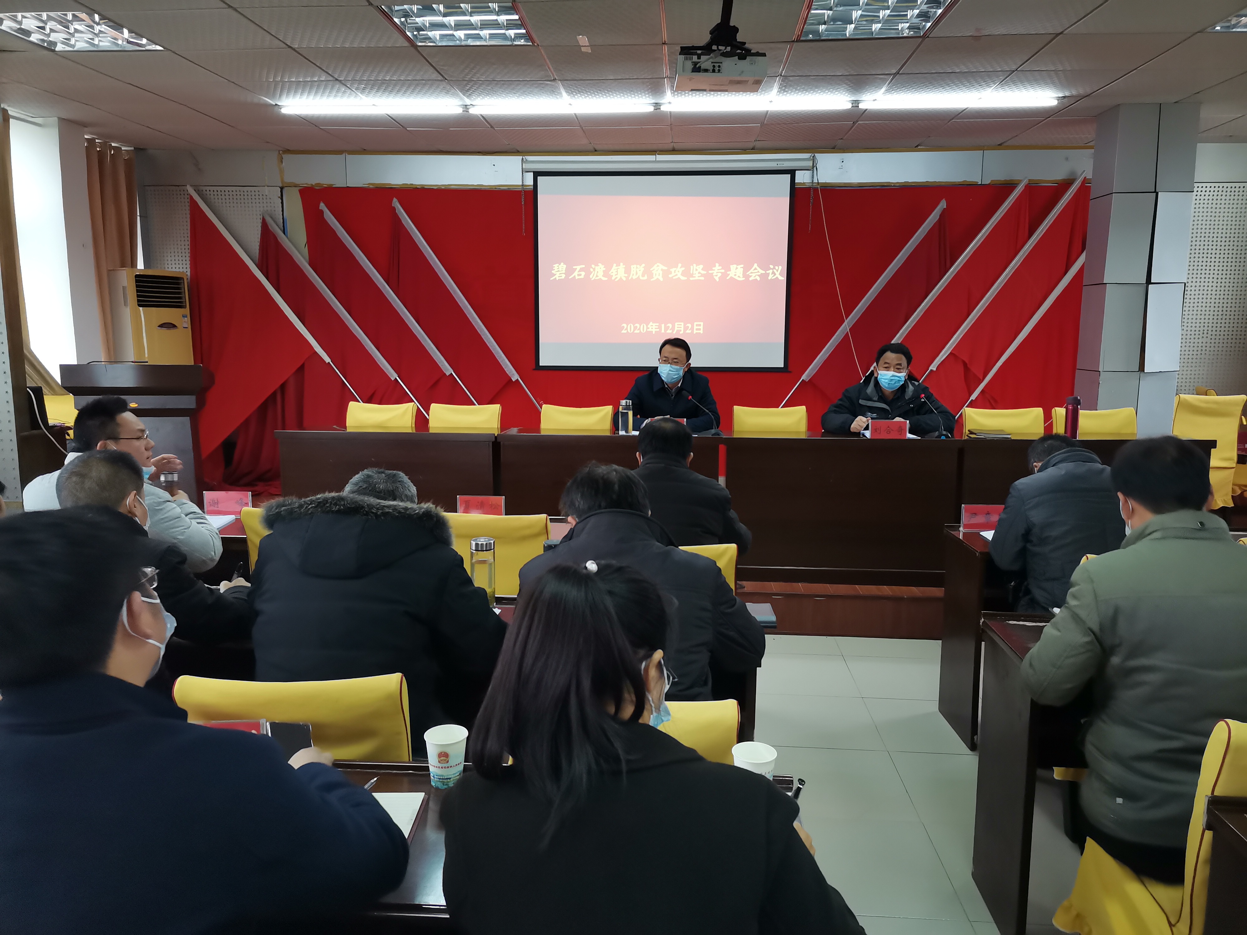 为做好2020年扶贫开发工作成效考核工作,安排部署下一步扶贫开发工作迎检要求,2020年12月2日,碧石渡镇召开2020年扶贫开发工作成效考核迎检工作专题会议,参加会议的有镇“四大家”领导、涉及到扶贫的镇扶贫单位负责人、镇驻村工作组长,各村书记、驻村第一书记、驻村工作队长和村扶贫干部,会议由镇党委副书记、镇长刘维东主持。