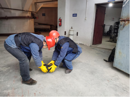 划定警戒区,疏散无关人员;查看搬运源罐人员受照剂量情况,送往医院检查;监测放射源,划出监督区和控制区;寻找放射源,将放射源搬至新的贮源库贮存……演习有条不紊,井然有序地进行着。