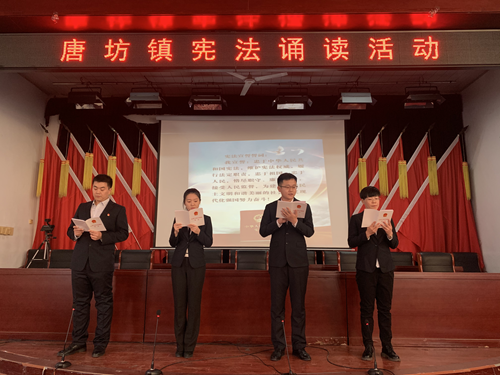 “社会主义制度是中华人民共和国的根本制度。中国共产党的领导是中国特色社会主义最本质的特征。”朗朗的诵读声在会议室里响起。第七个国家宪法日之际,唐坊镇宪法宣传活动火热进行中。