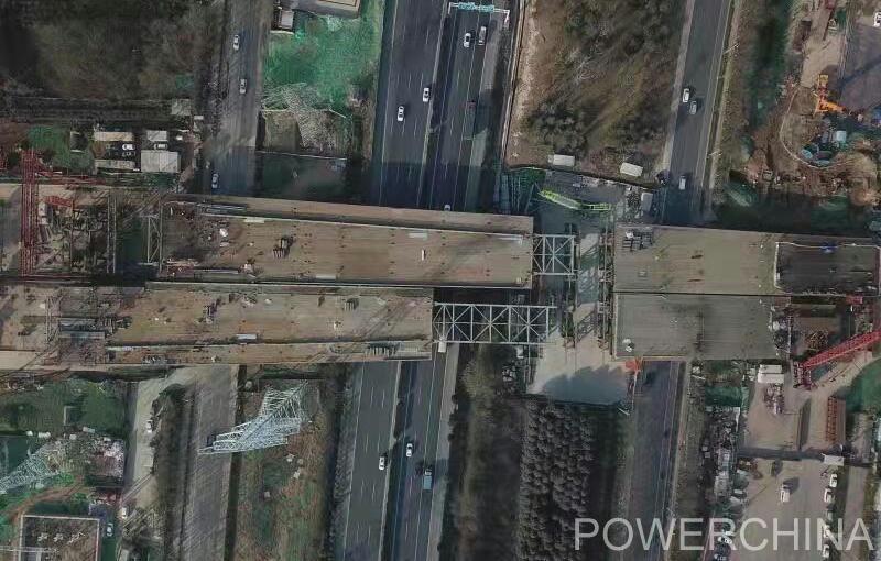 西安国际港务区杏渭路跨绕城高速大跨径顶推完成