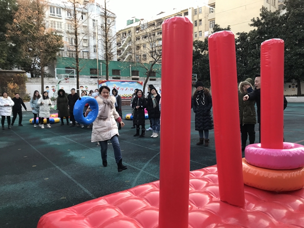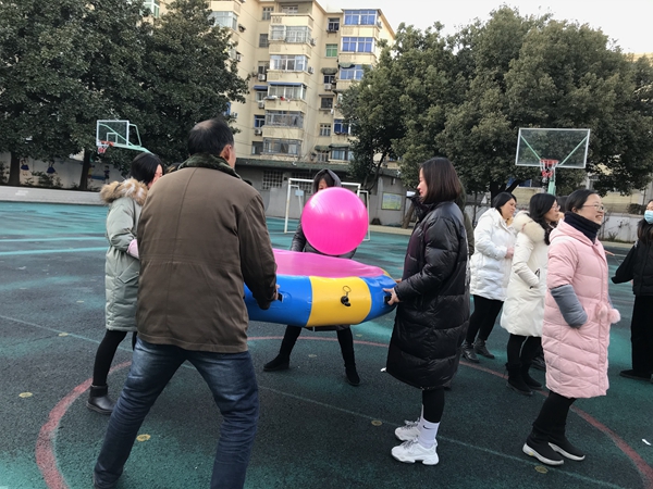 本次教师趣味运动会由学校工会组织,全体教职工的积极参与。在工会主席刘长宁精心策划下,全体教师分九组,比赛项目有“汉诺塔接力”和“众星捧月垫球”游戏。