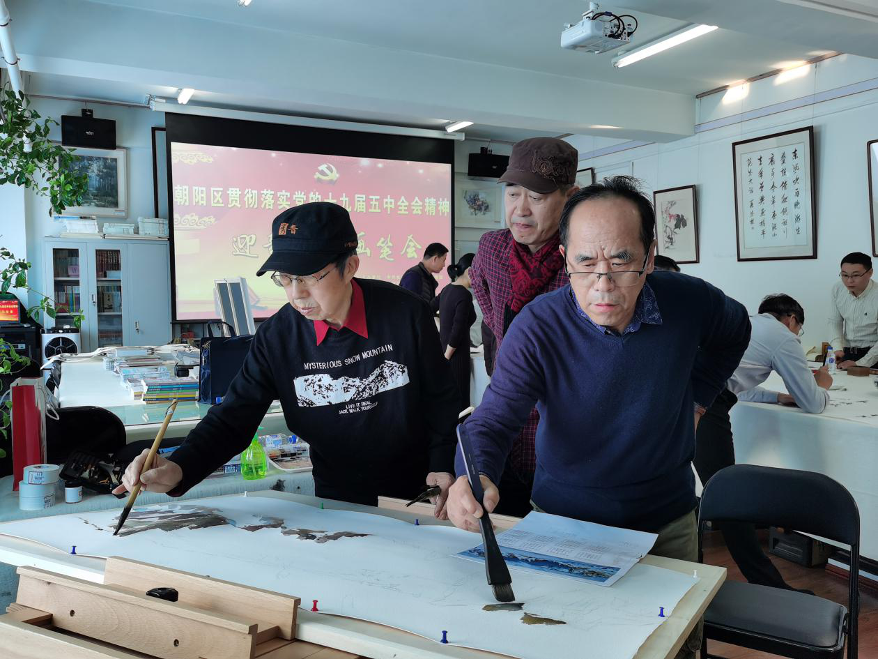 此次笔会是朝阳区文联落实党的十九届五中全会精神举办的一次笔会。在三个小时的时间里,书画家们以经典的书画艺术形式,蕴深情于笔墨,宣传贯彻了党的十九届五中全会精神,讴歌伟大祖国,抒发了书画家们对党、对祖国、对家乡的热爱,底蕴丰富,令人赞不绝口。书画家们在创作中交流心得,尽献技艺,以恢弘的笔体气势和雅致的艺术形式,表达了朝阳区文艺工作者坚定文化自信和积极向上的精神面貌。