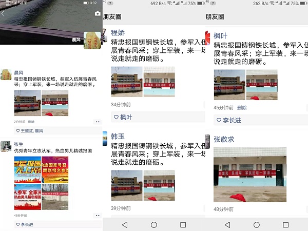 学校通过悬挂征兵宣传条幅和征兵宣传标语,并利用学校微信群,教师朋友圈转发等形式大力宣传征兵政策,宣传应征入伍的好处及保家卫国的重要性,提高适龄青年对征兵政策的知晓度,激发广大适龄青年应征入伍的积极性和自觉性,把征兵宣传工作做细做实。