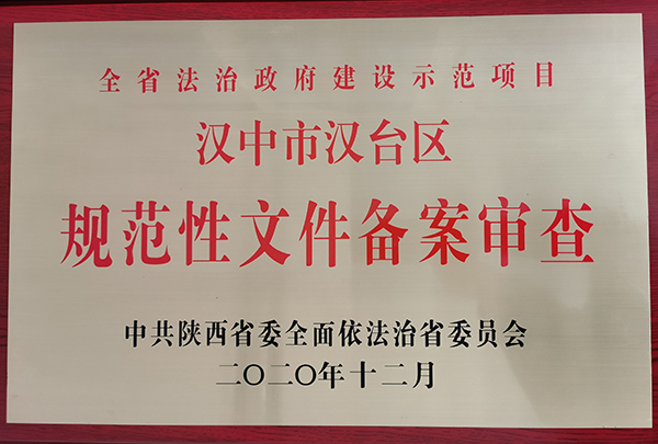 汉台区成功创建2020年陕西省法治政府建设“规范性文件审查备案”示范项目