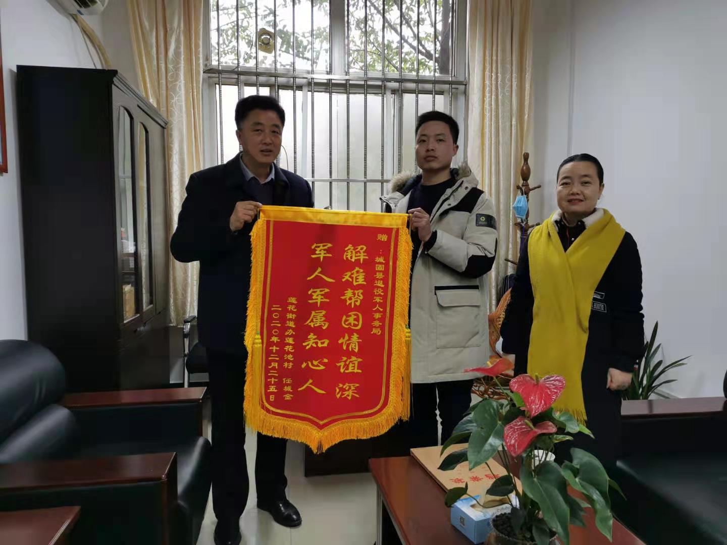 1月4日,2021年元旦收假后的第一个工作日,68303部队战士任城金带着锦旗和感谢信早早的来到城固县退役军人事务局,向退役军人事务局表达感谢!