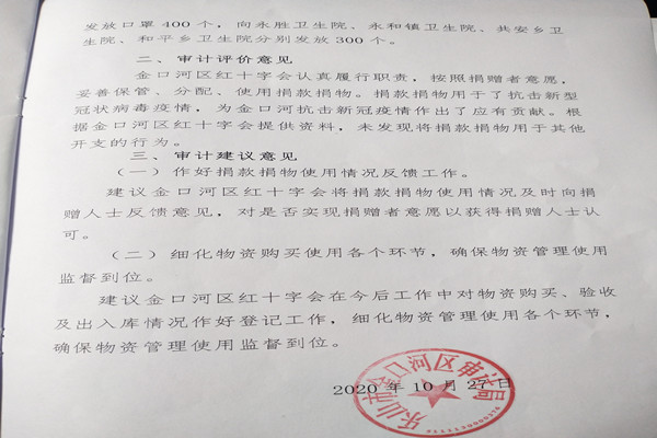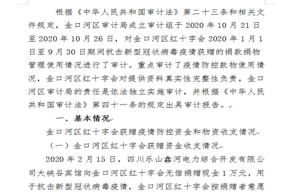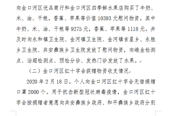 2020年金口河区红十字会获赠疫情防控资金和物资收支情况