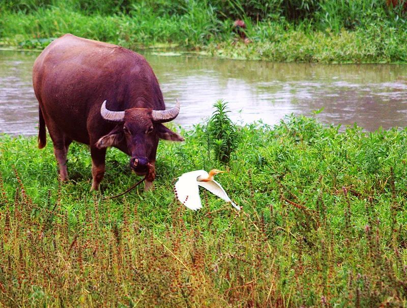 不时与牛羊嬉戏
