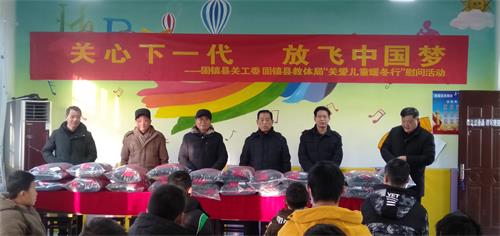 2021年1月13日上午,由固镇县关心下一代工作委员会和固镇县教体局举行的“关爱儿童暖冬行”慰问活动在固镇县特殊教育学校举行。县关工委主任王维全、副主任张友超、殷献义,县教体局副局长李春华,教体局关工委主任左敬学等领导出席捐赠仪式。县特教学校全体师生参加了捐赠仪式。