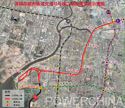 深圳市城市轨道交通12号线二期工程线路起于12号线一期工程线路终点(海上田园东站明挖区间末端),终至既有地铁11号线、在建地铁6号线换乘站松岗站,线路全长约8.05公里,共设站6座,均为地下敷设。增设东宝河停车场一处,共享在建6号线松岗主变电所和既有11号线机场北主变电所,与12号线一期共用一处控制中心纳入NOCC二期工程实施。此外,该项目还包含其他线路的两座装配式车站,即6号线支线二期华夏站、13号线二期市中医院站。按照计划,该项目将于2025年底开通初期运营。