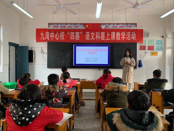 2021年1月4日开展了“我与双拥同行”主题升旗仪式。通过国旗下讲话,校长李长进向同学们宣传双拥工作的重要性。该校通过展板、条幅、电子屏,挂贴宣传拥军优属拥政爱民知识。各班充分利用班级黑板报,大力宣传,让拥军优属拥政爱民的优良传统永远扎根学生心中。学校以“小手拉大手”的形式,让孩子向家长宣传。