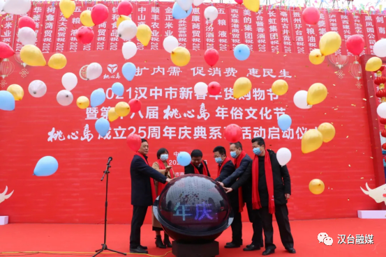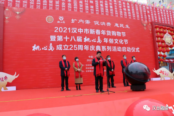 近日,以“扩内需促消费惠民生”为主旨的2021汉中市新春年货购物节暨第十八届桃心岛年俗文化节、桃心岛成立二十五周年庆典系列活动启动仪式在主会场桃心岛五一路超市前广场举行。