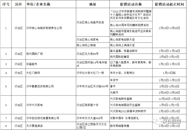 2021年汉台区新春年货购物节促销活动预览表
