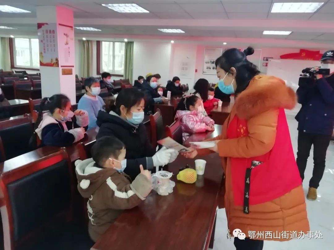 ? 1月21日上午,为使广大少年儿童度过一个健康、安全、温暖、幸福、充满爱的寒假,西山街道妇联在石山社区开展“把爱带回家”2021寒假儿童关爱服务活动。为困境儿童送上书籍大礼包、防疫健康知识讲座等。街道党工委副书记、妇联主席段新明、驻社区工作组长、妇联副主席张春曼参加活动。邀请了西山街道社区卫生服务中心医生郭怀德向辖区内末成年人上了一堂关于新型冠状病毒防疫的小知识课,并着重围绕如何佩戴口罩、如何洗手等进行现场演示。孩子们都听得非常认真,碰到不太懂的也是迅速举手提问。巾帼志愿者向在座的家长及孩子们发放《注重家风》、《反家庭暴力法》、《妇女儿童权益保护法》等宣传资料,倡导广大家长做好家风建设的榜样,通过言传身教,注重家庭教育,争做智慧家长。随后西山街道妇联主席段新明走访了辖区内困境儿童,并送给他们书籍大礼包,寄语孩子们学会感恩,好好学习,孝顺父母,关爱他人。送上新春的祝福,让留守儿童、困境儿童感受到党和政府的关怀、感受到社会主义大家庭的温暖。为他们的健康快乐成长营造良好社会环境。