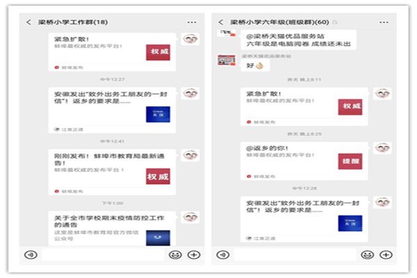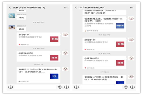 九湾梁桥小学通过微信工作群开展校园疫情防控宣传工作