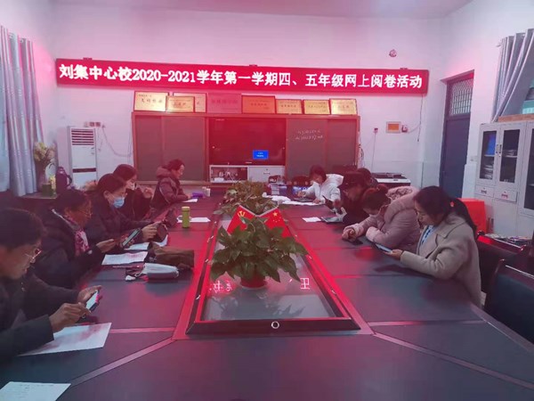 为积极响应县教体局有关2020—2021学年第一学期四五年级期末网上阅卷安排,2021年1月22日上午,固镇县刘集中心校及时组织辖区内各小学四五年级骨干教师,到刘集小学会议室进行四五年级期末考试网上阅卷。