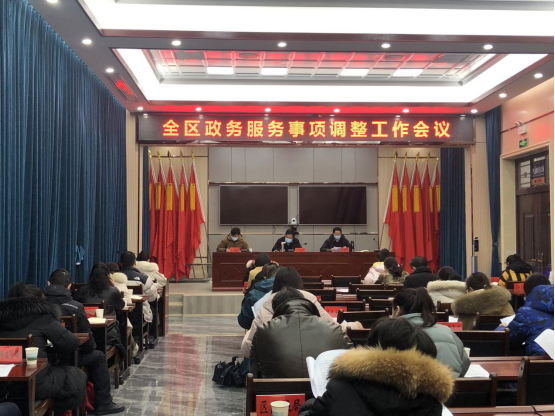 会上,区行政审批局局长彭友钧宣读《省人民政府办公厅关于印发湖北省省市县乡村五级依申请及公共服务事项清单(目录)的通知》、《省推进政府职能转变和“放管服”改革协调小组办公室关于贯彻落实湖北省省市县乡村五级依申请及公共服务事项清单(目录)的通知》,并就事项认领工作进行安排部署。