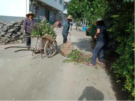 在梁子镇刘斌村妇联主席的组织下,村里的妇女群众来到了各个村湾、道路旁,她们拿着除草、清洁卫生工具,清理着房前屋后和道路旁的杂草和杂物。