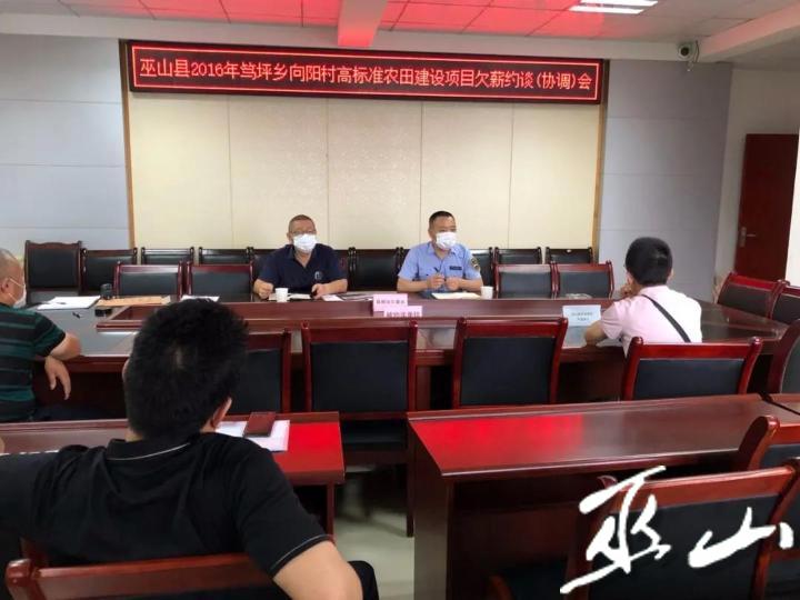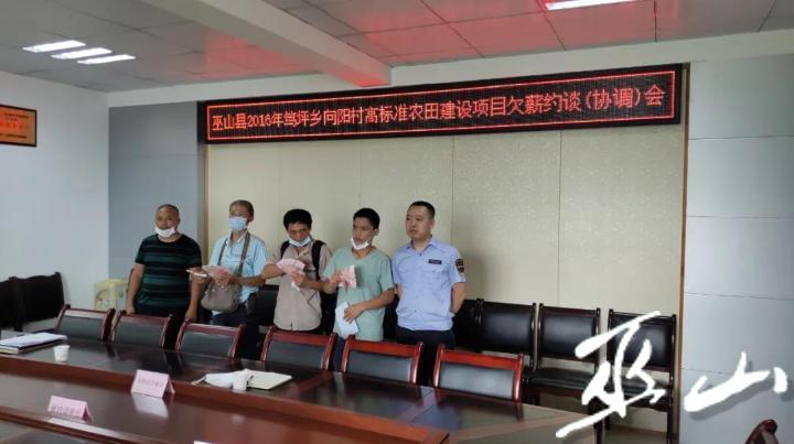 近日,巫山县人社局劳动行政执法支队接到侯某某等4名湖北建始县农民工的投诉,据他们4人反映,2017年6月-9月在我县笃坪乡向阳村高标准农田建设项目中做工,至今有33700元工资未领取。