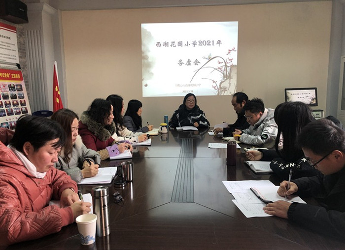 1月28日上午,西湖花园小学召开2021年工作务虚会,围绕2021年主要工作进行交流讨论。会议由校长梁俊主持,全体中层及以上领导参会。