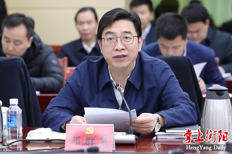 邓群策表示,将以此次民主生活会为新的起点,以高度的政治定力扎扎实实办好衡阳自己的事情。带头坚定政治方向,始终沿着习近平总书记指引的方向笃定前行;带头提升政治能力,切实增强政治判断力、政治领悟力、政治执行力,自觉把衡阳各项事业置于“两个大局”来审视、分析和推进;带头强化政治担当,奋力扛起建设省域副中心城市的历史使命,努力在实施“三高四新”战略中走在前、打头阵;带头站稳政治立场,始终坚持以人民为中心,不断增强人民群众的获得感幸福感安全感;带头扛牢政治责任,持续营造正气充盈的政治生态和奋勇争先的发展环境,为实施“三高四新”战略、建设现代化新湖南作出衡阳新的更大贡献。