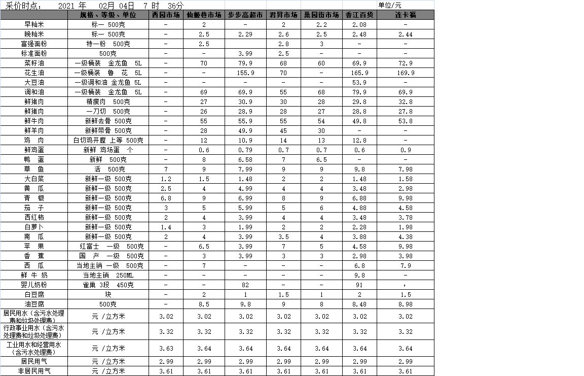 · 【物价】 2021-02-04衡阳市民生价格信息